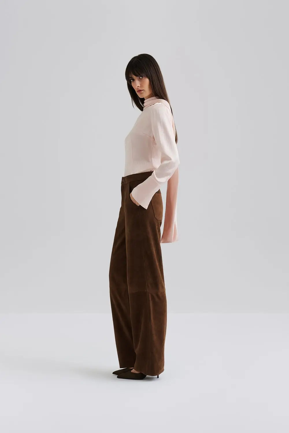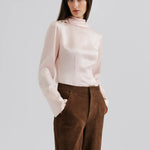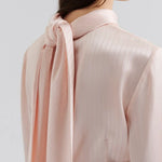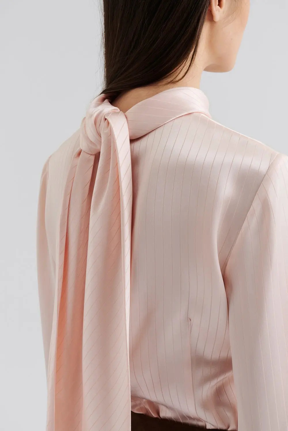 Bluse i satinjacquard med tørklædedetalje bag på kraven