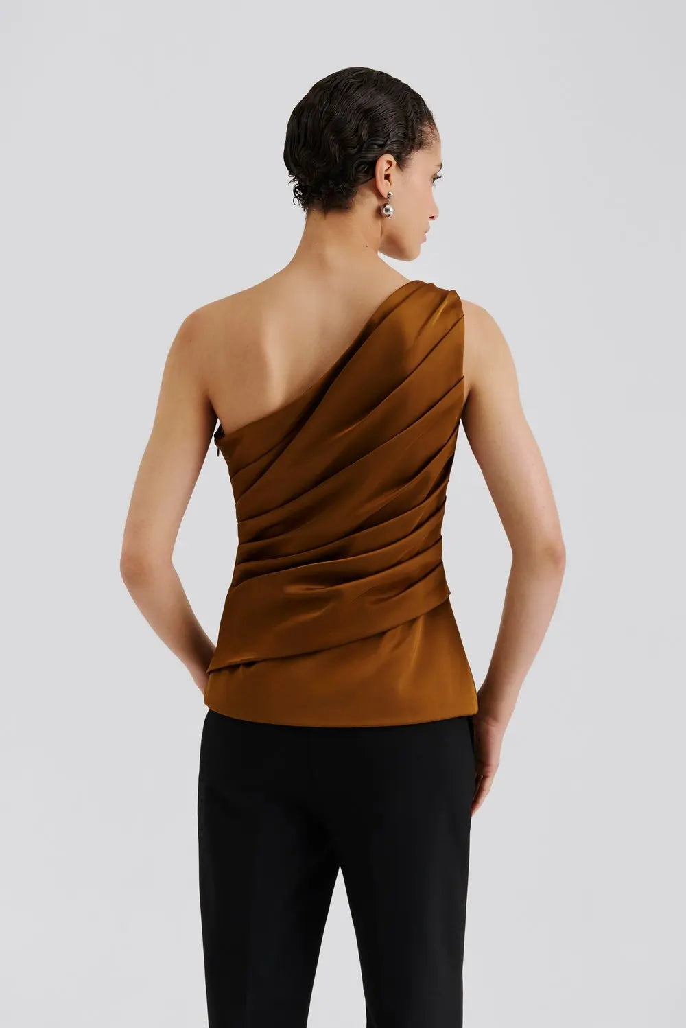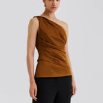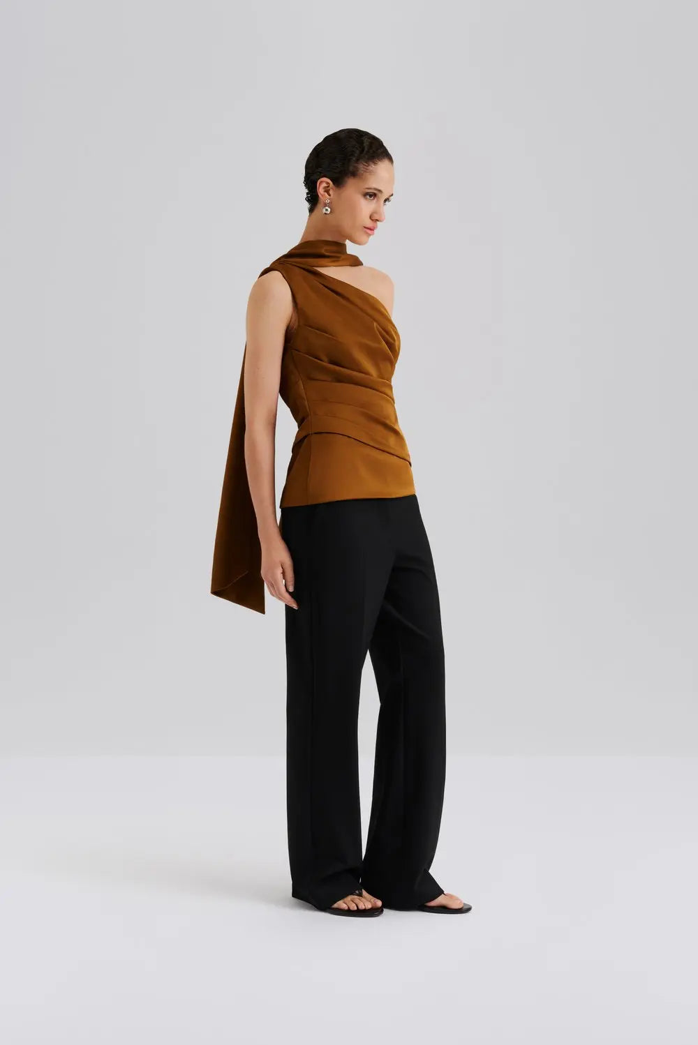Draperet one-shoulder top med rynkede detaljer og langt tørklædebånd.