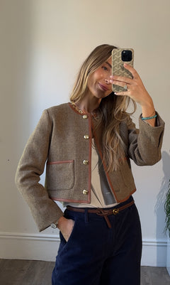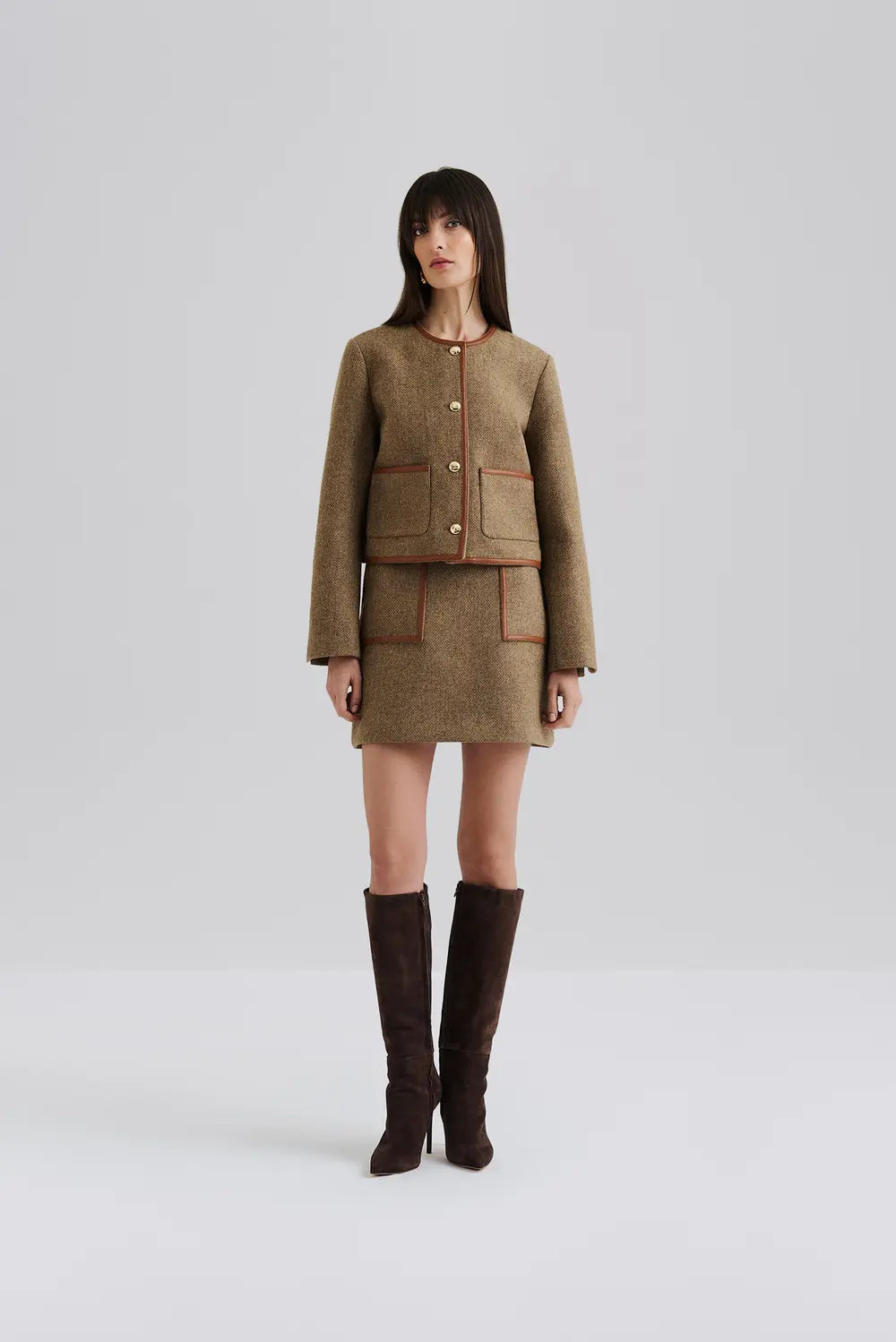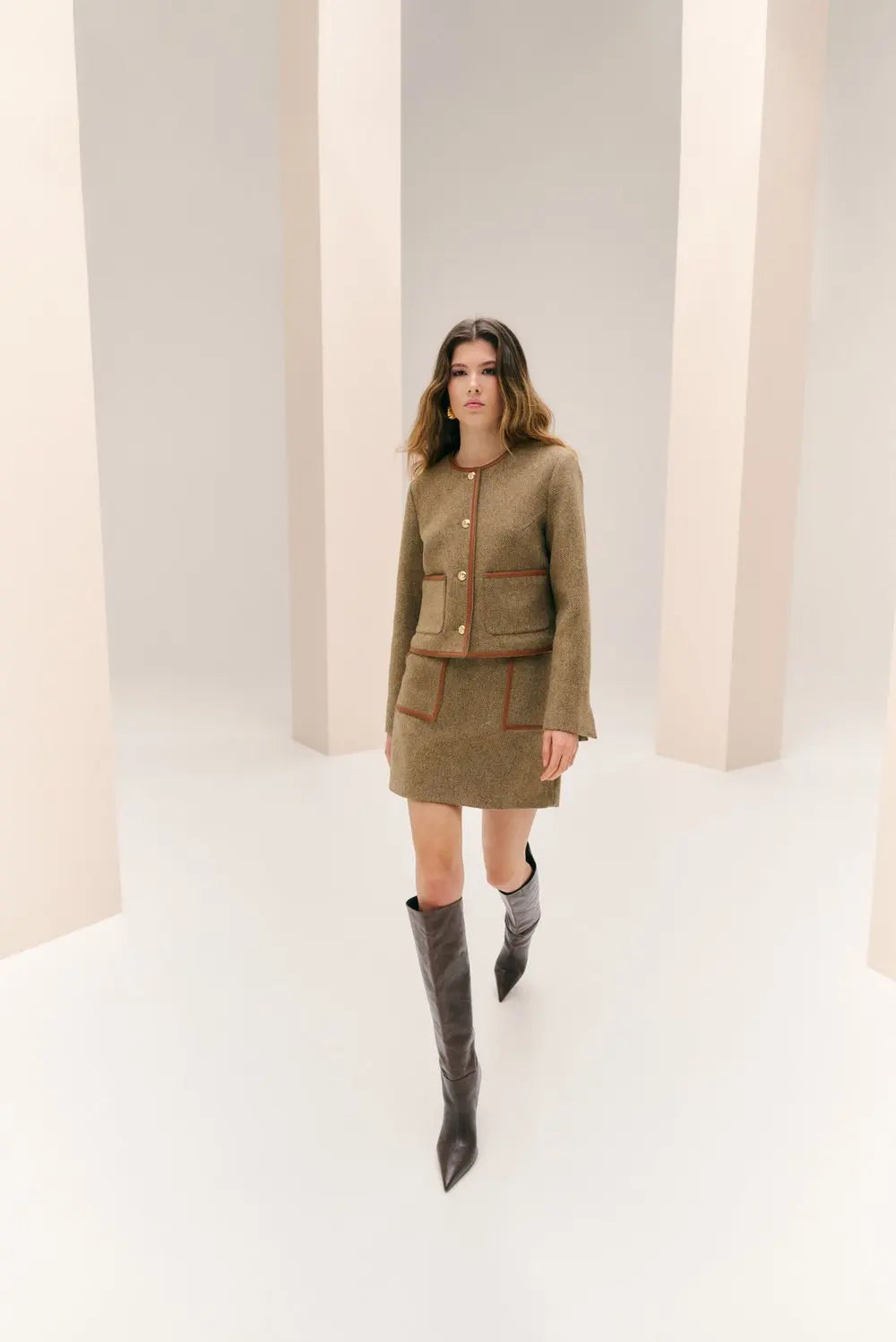 DETALJER• Lommedetaljer• Uld tweed• Læderkant