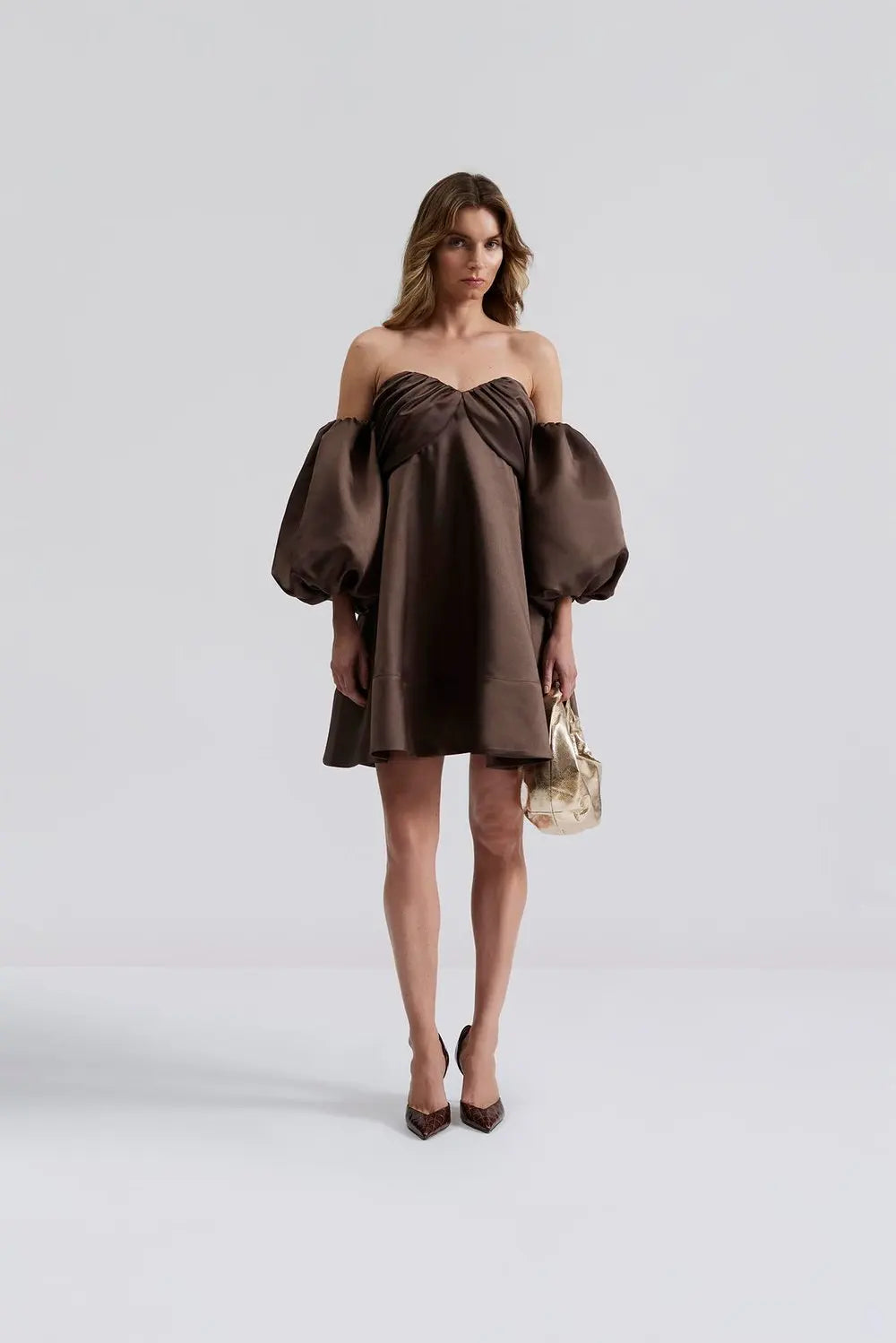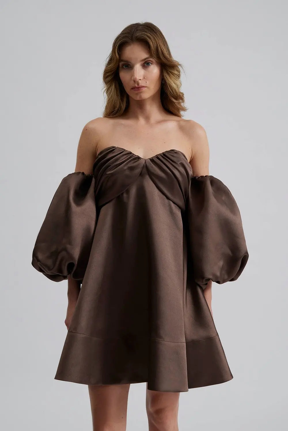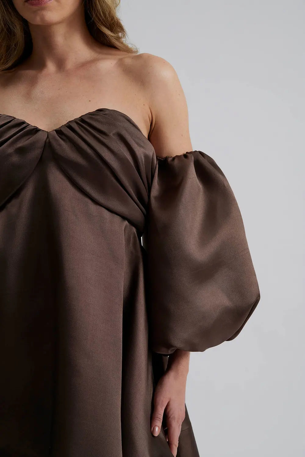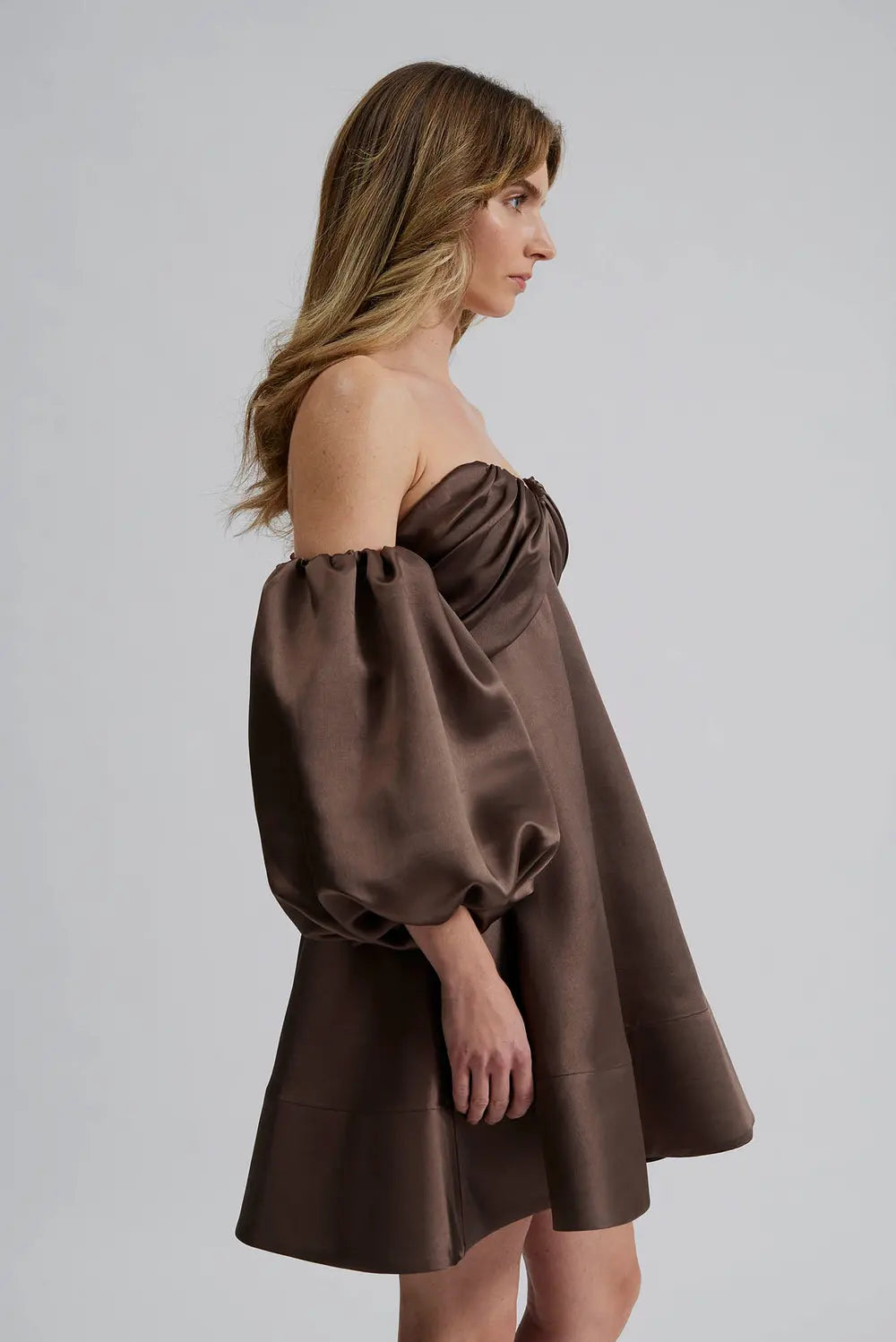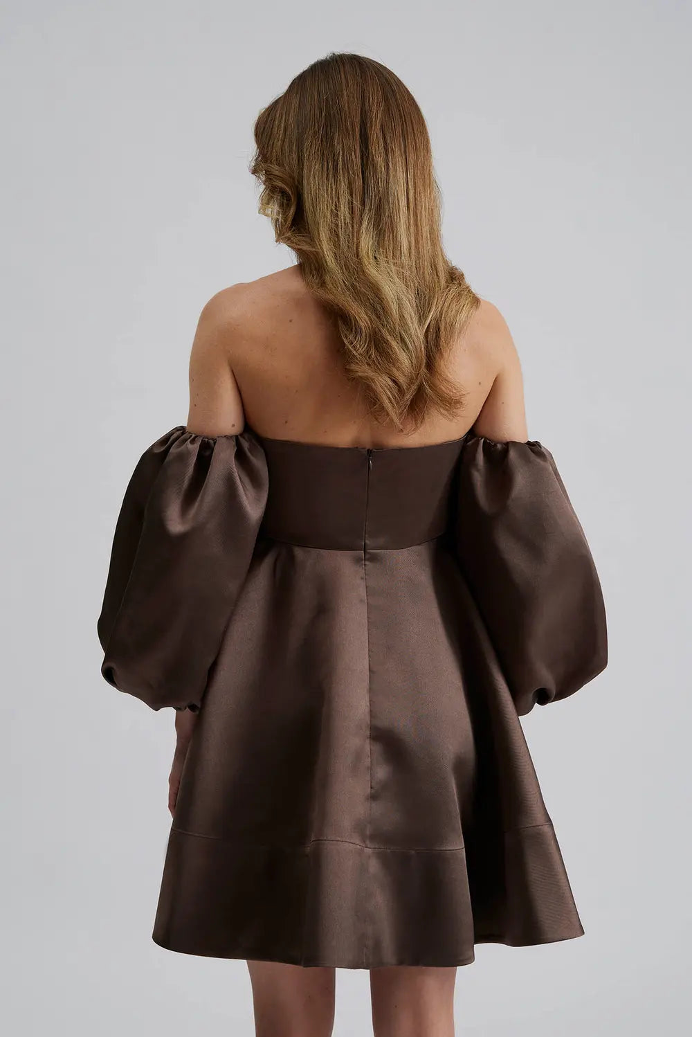 By Malina - Val mini dress Off-the-shoulder mini dress, Chocolate