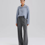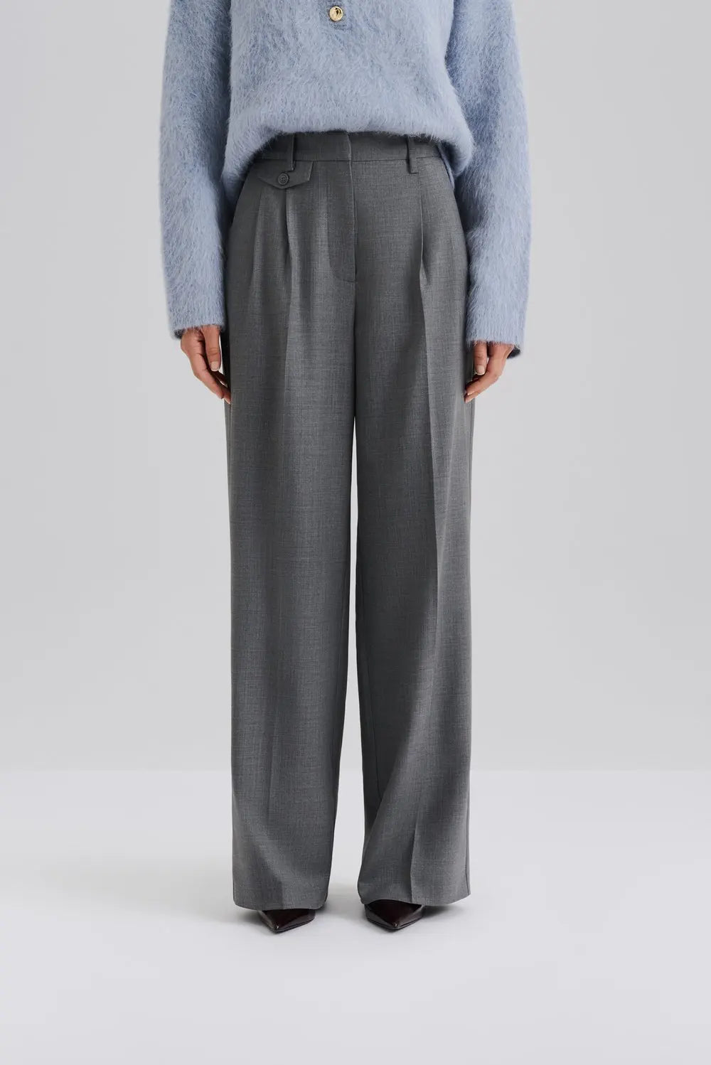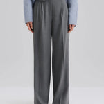 Skræddersyede hørbukser med vidde ben og lommepynt foran.