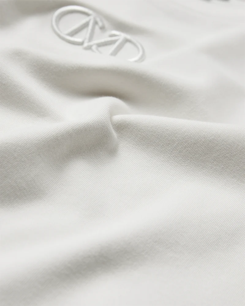 Cmmuse-Tee er en T-shirt i en eksklusiv, tyk bomuldskvalitet. T-shirten er kort i modellen med rib i den runde halsudskæring, en broderet logodetalje på brystet samt korte ærmer med drop shoulders, der understreger den oversized silhuet.