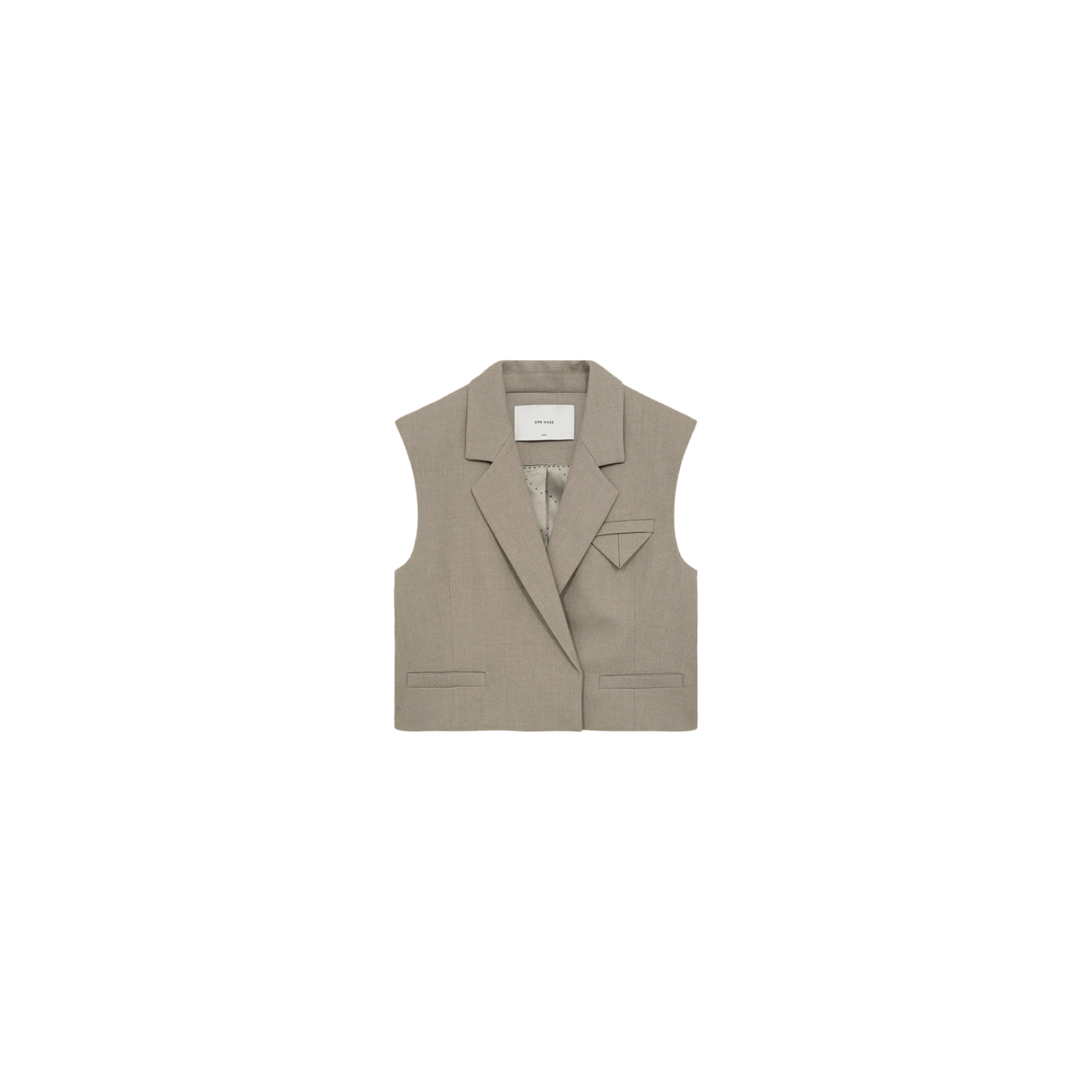 Vesten er i et eksklusivt materiale med logoprintet for, en løs pasform, skjult lukning foran og en V-udskæring med revers.