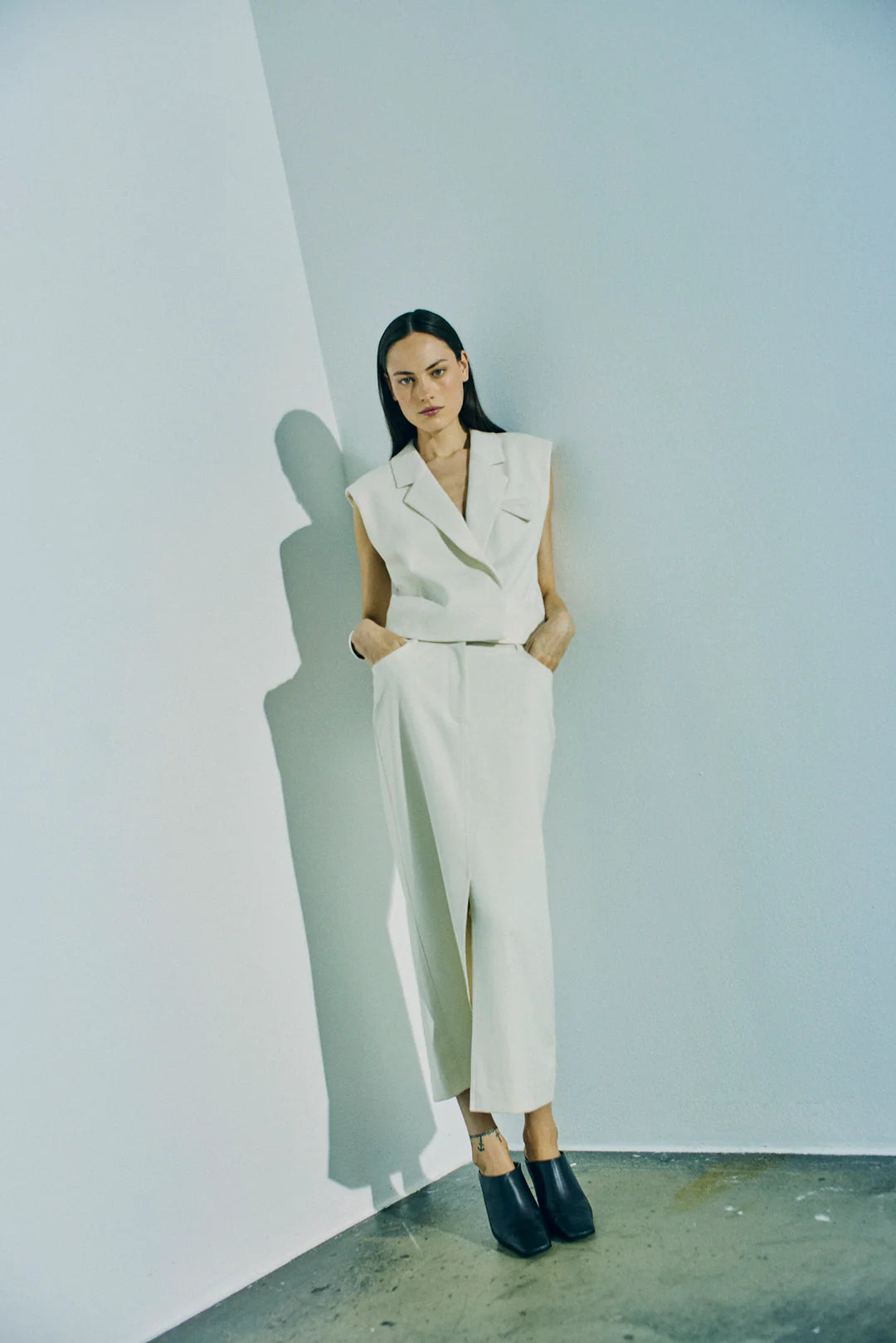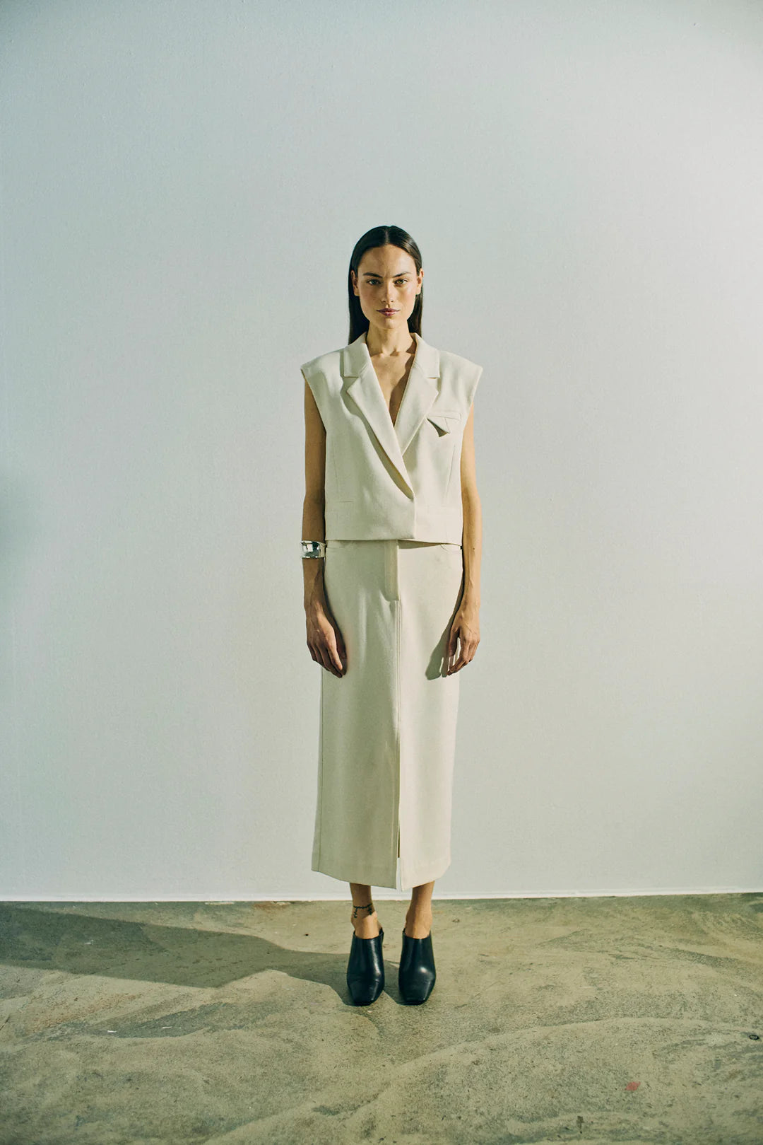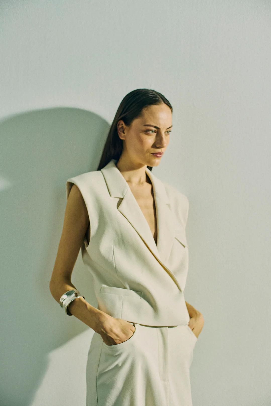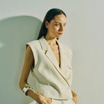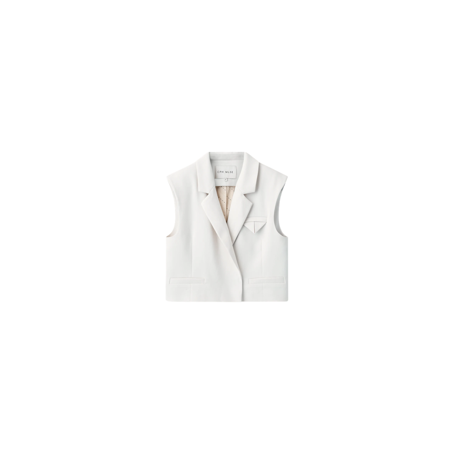 Vesten er i et eksklusivt materiale med logoprintet for, en løs pasform, skjult lukning foran og en V-udskæring med revers.