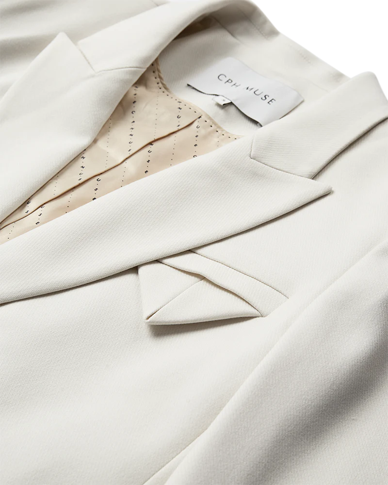 CMTAILOR-BLAZER er en blazer i det ikoniske, stilfulde Tailor-materiale med logoprintet for, brede skuldre, knaplukning, V-hals med revers, en normal pasform med en fremhævet talje, en slids bagpå og lommer foran.