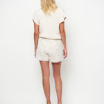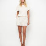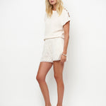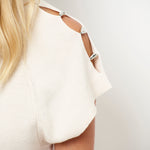 Seattle kortærmede pullover i Butter Cream er fremstillet af raffineret økologisk ribstrik. Designet med en afslappet silhuet har den karakteristiske åbne skulderdetaljer, der er fastgjort med fine metallukninger, der tilføjer et diskret moderne præg. Den ribbede tekstur tilbyder en blød struktur, hvilket gør denne pullover til et minimalistisk, men alligevel iøjnefaldende stykke stykke tøj til hverdagsbrug.