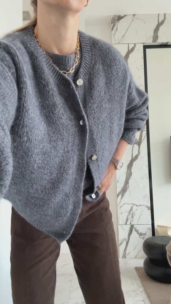 Den her cardigan kombinerer blød komfort med et feminint og elegant look. Den er strikket i en lækker kvalitet med 30 % babyalpaka, som gør den både varm og superblød - helt perfekt til kølige dage.
