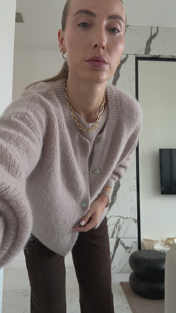 En cardigan du bare har lyst til at tage på igen og igen. Den er superblød og lun. takket være de 30 % babyalpaka er den virkelig behagelig at have på.