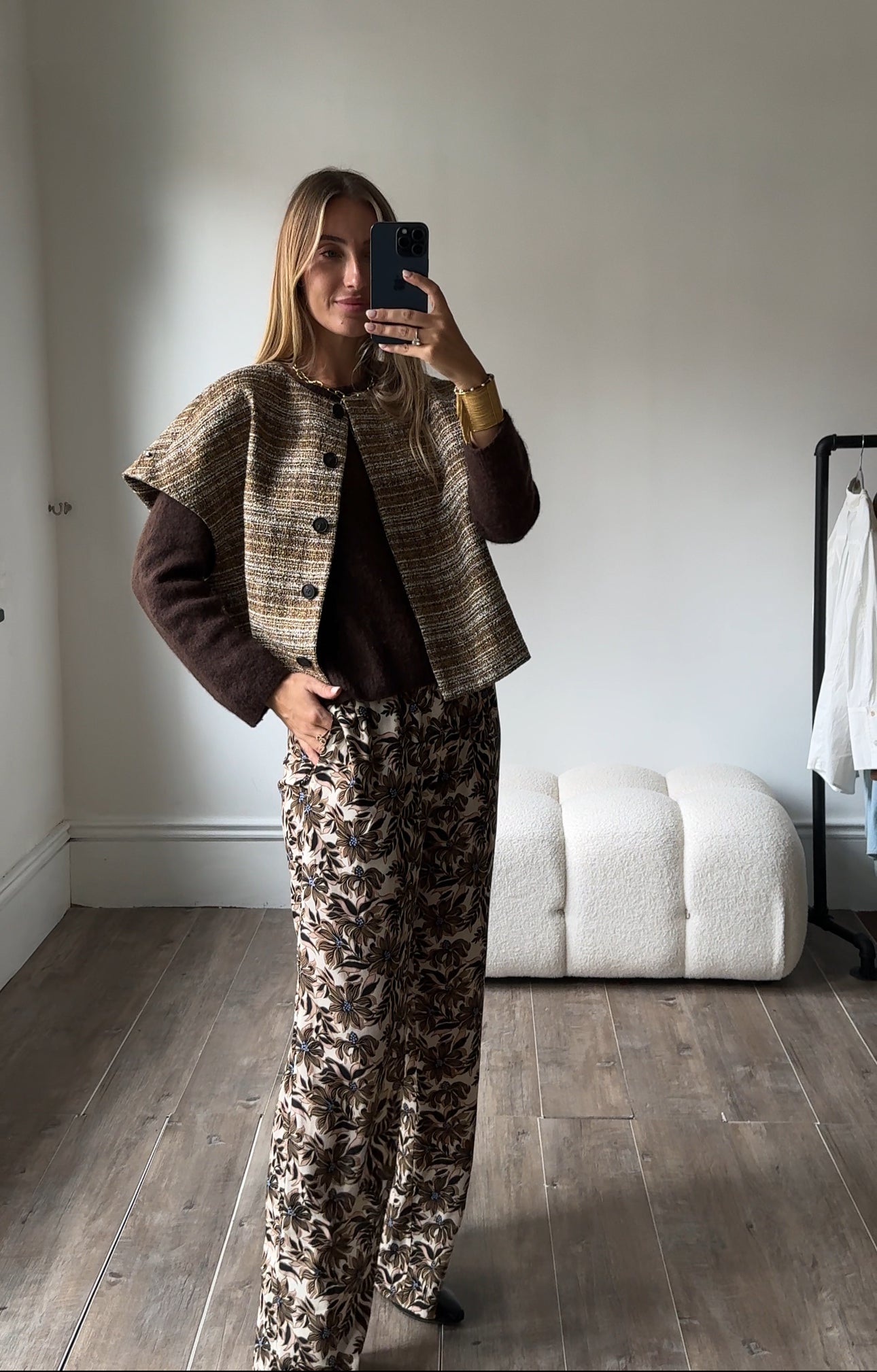 Style den med sorte bukser for et rent kontrastlook eller over en enkel top for at fremhæve tekstur og silhuet.