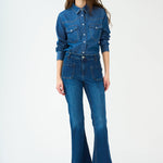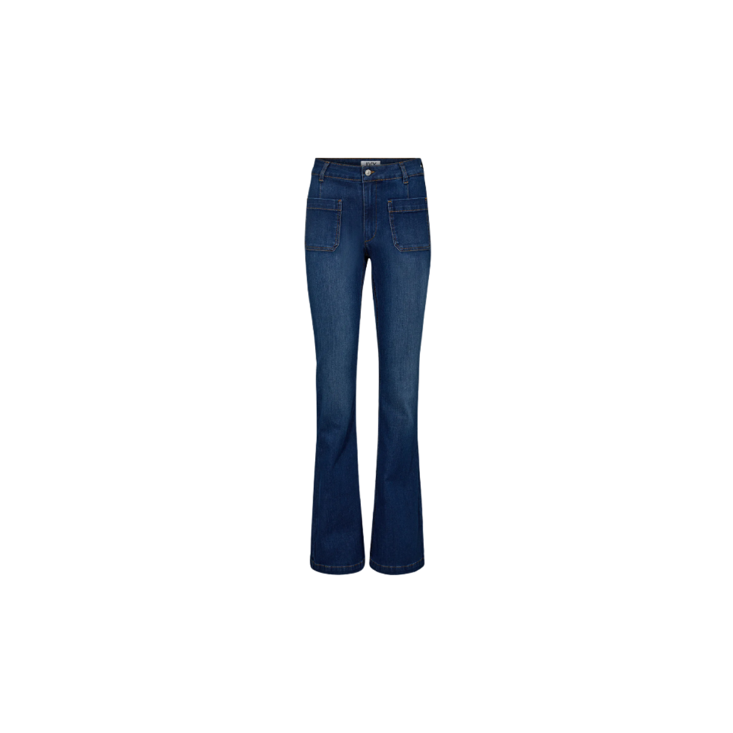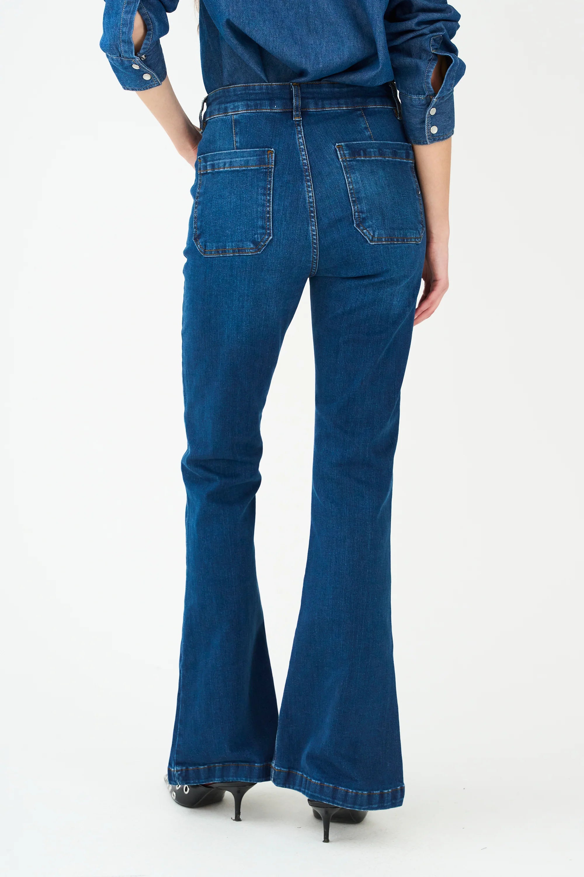 Ann Charlotte Jeans er et frisk pust til din denimgarderobe. De har mellemhøj talje, slim pasform og brede, dramatiske ben - en fed kombi af stil og komfort.
