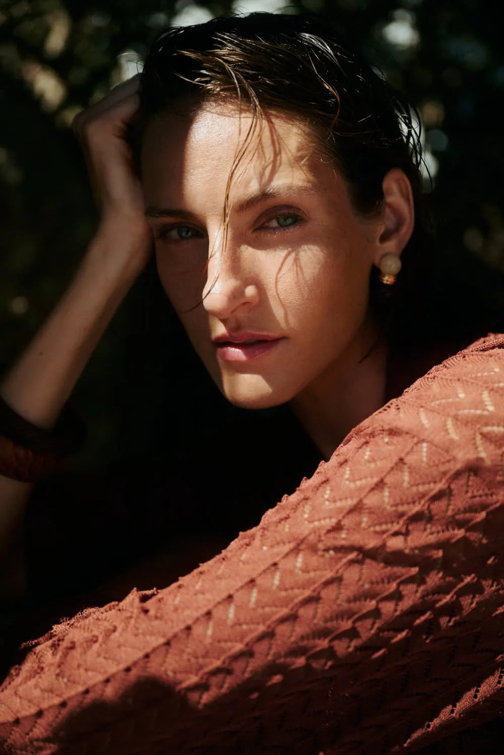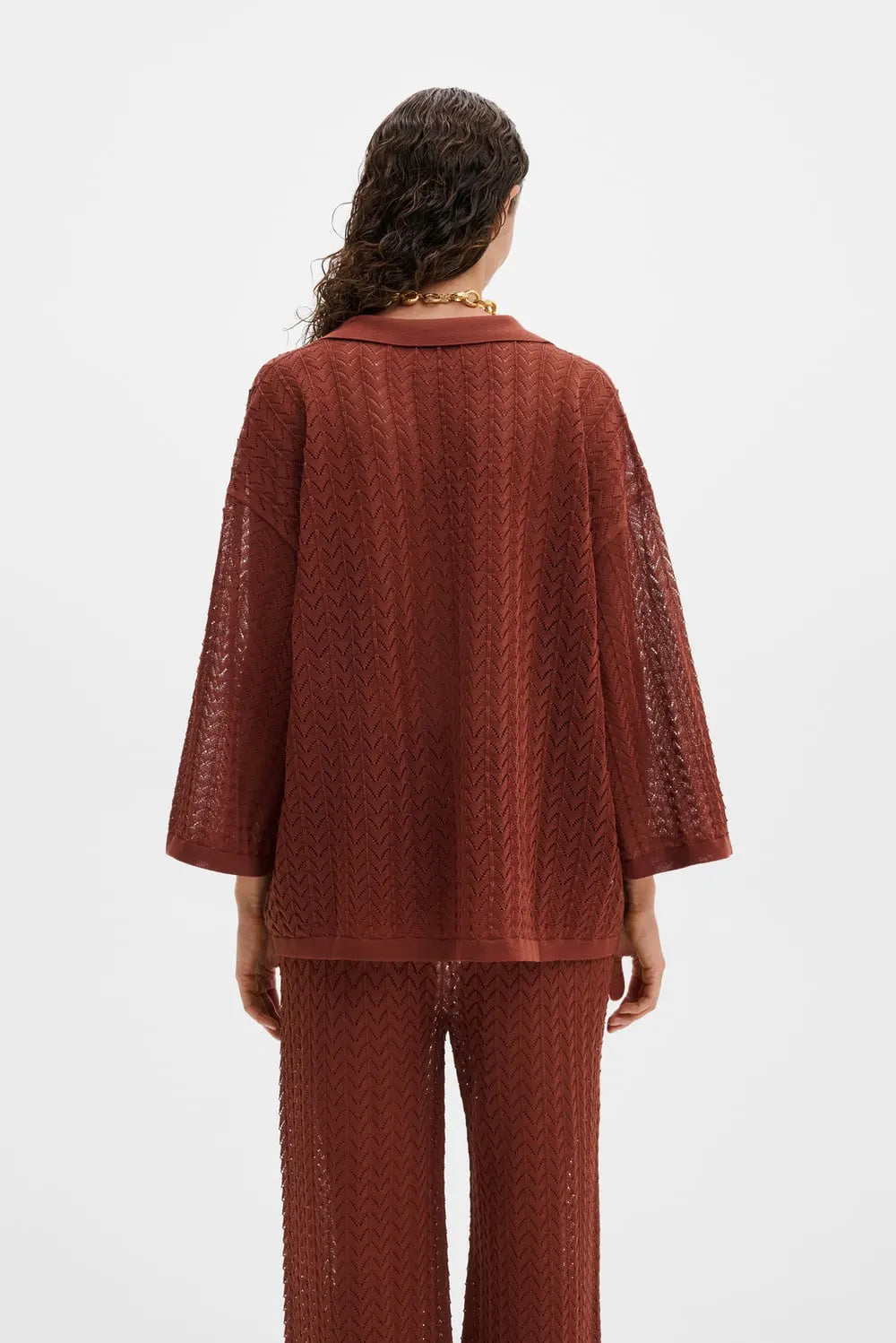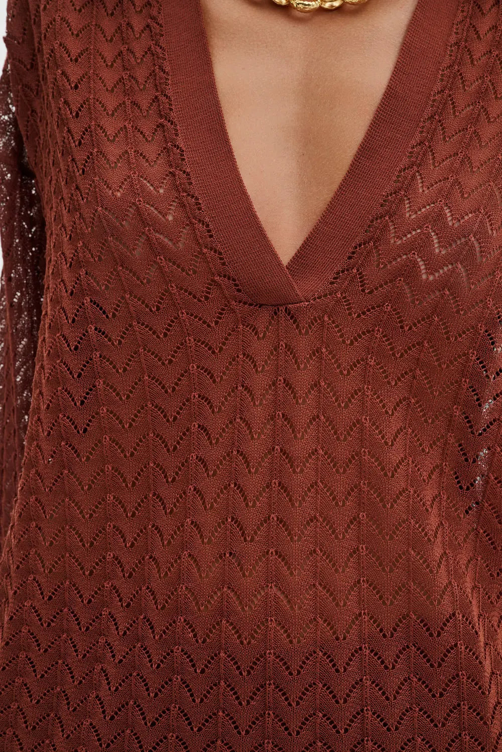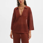 Pointelle-strikket polo med V-udskæring.