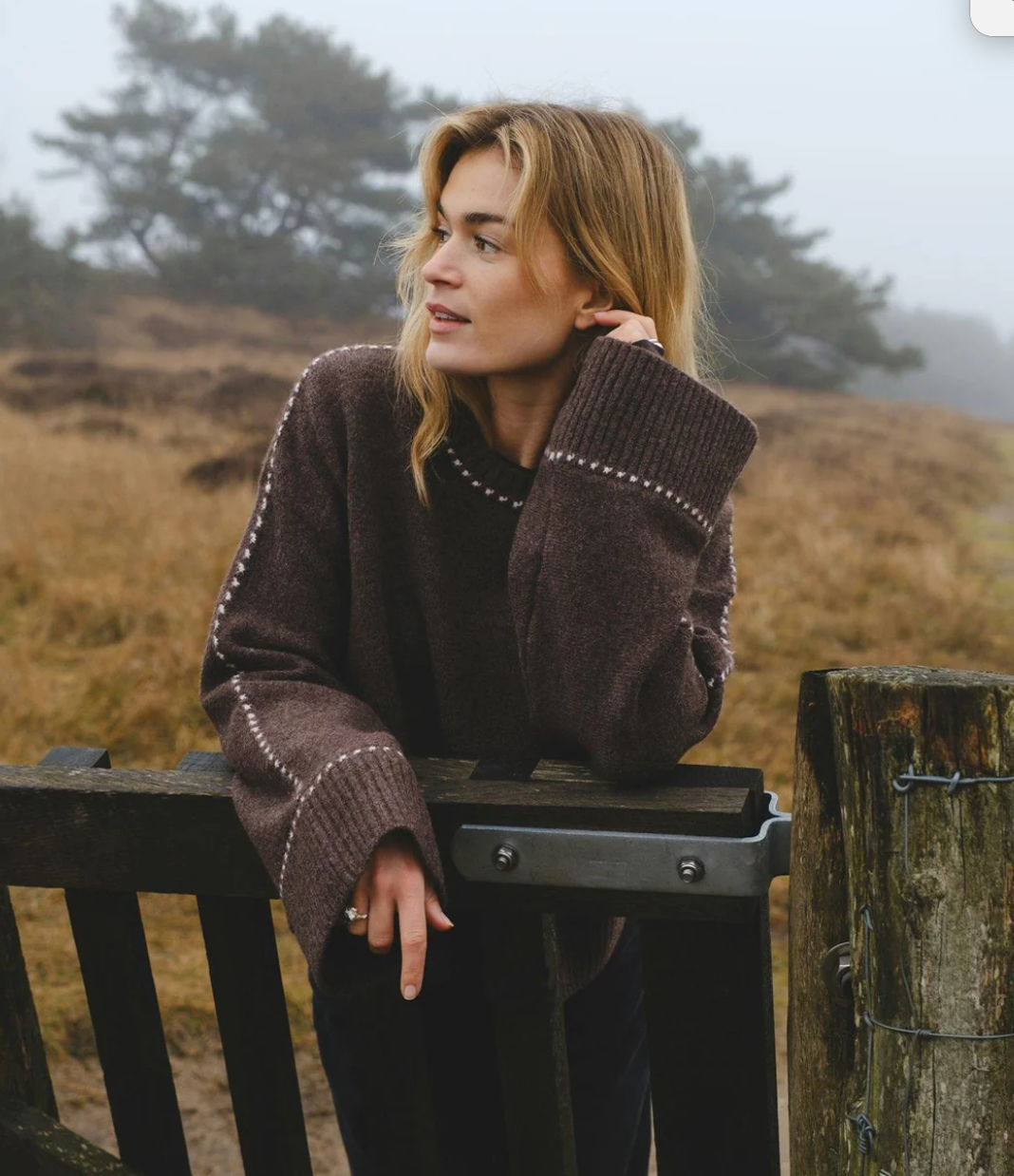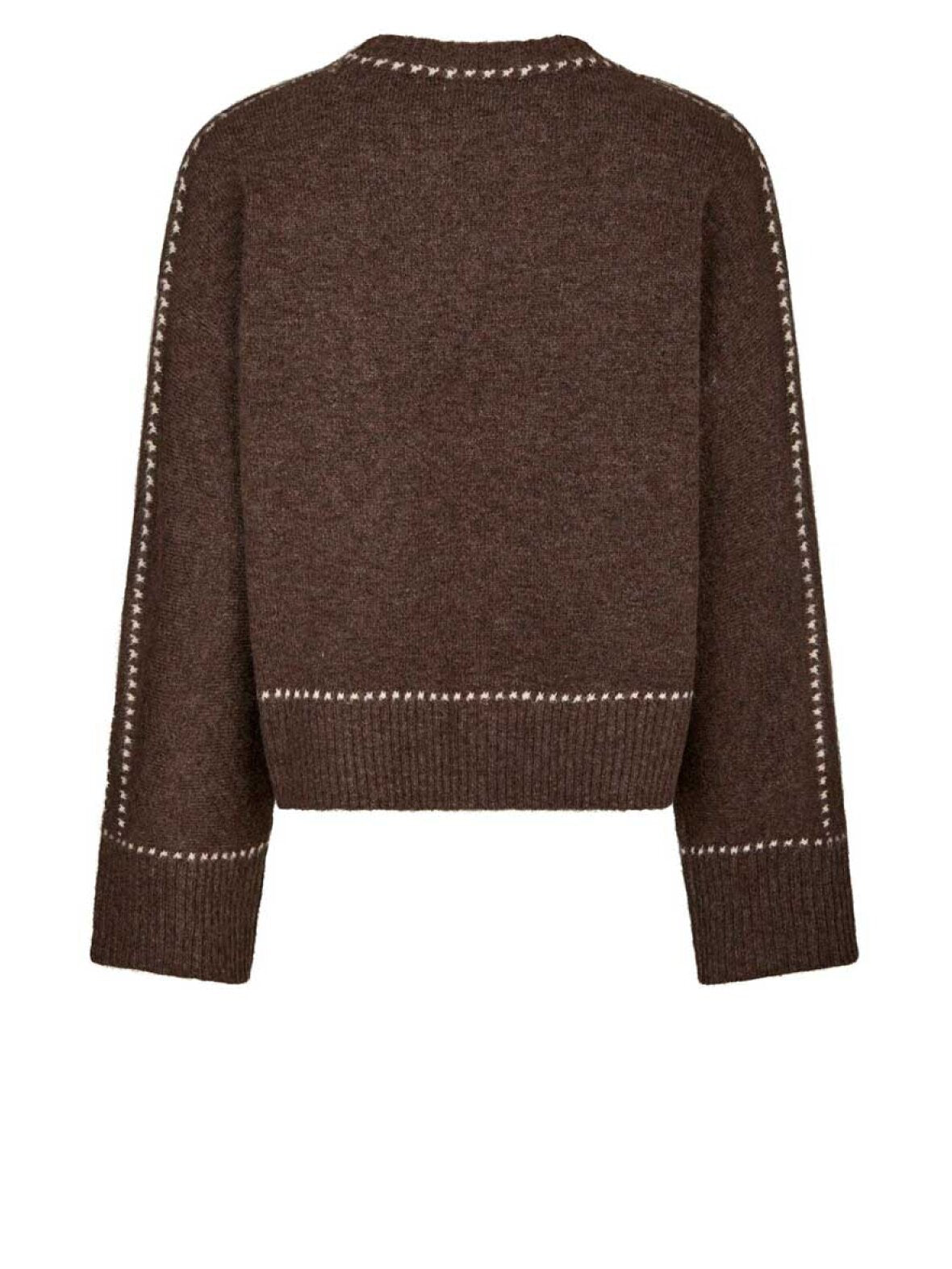 Strik fra Neo Noir i skønt blødt materiale. Roeme Knit Stitch blusen har lange brede ærmer, ribkanter og fine kontrastfarvede stikninger. Strikken har en løs og behagelig pasform, samt en rund hals.