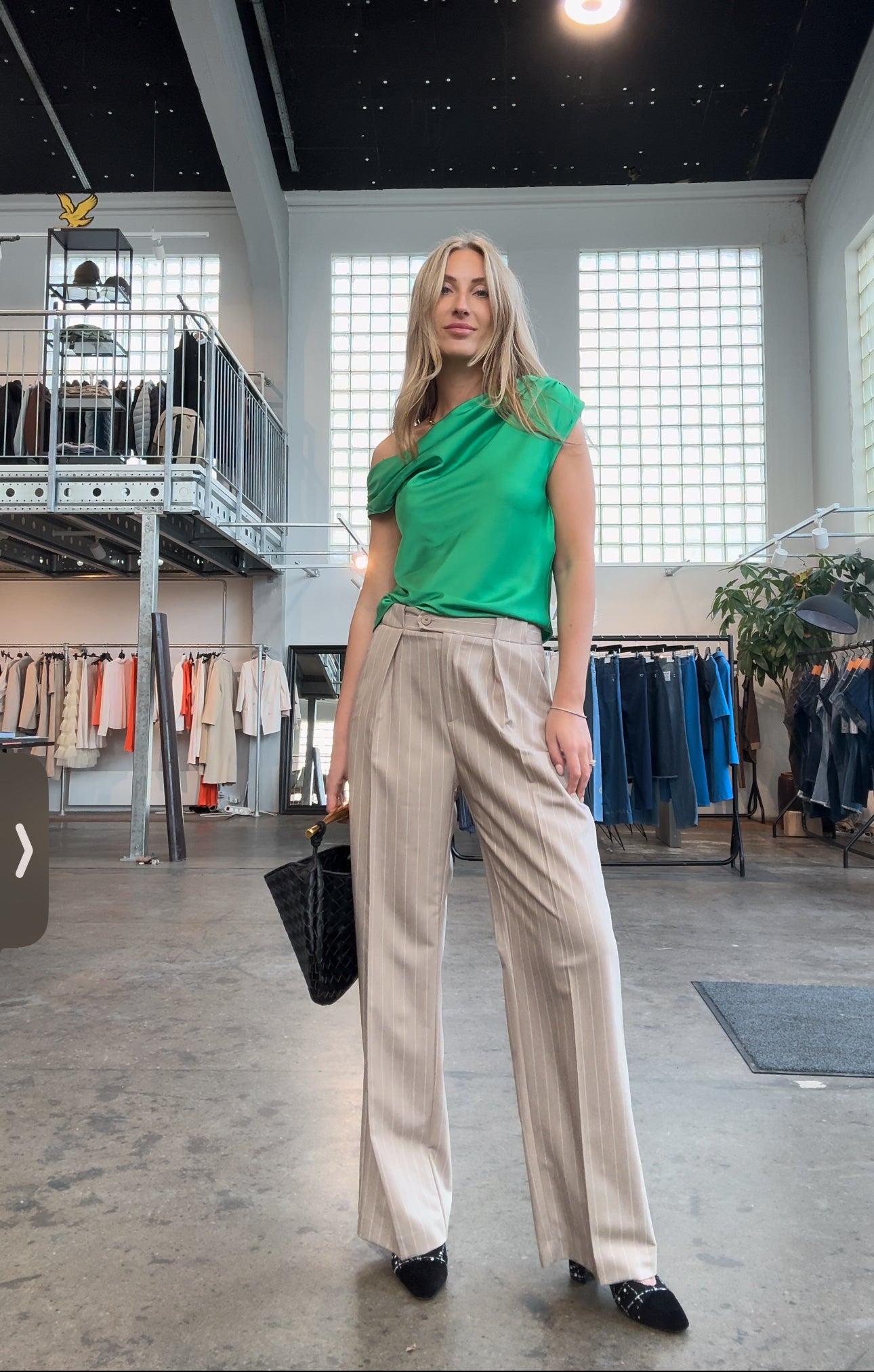 Denne model har en høj talje, læg(uden det gør dig bred) samt en lomme bag på. Falder let.