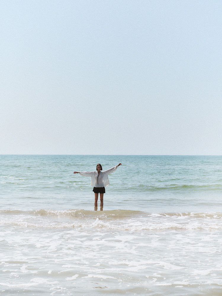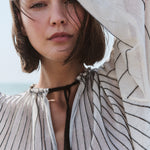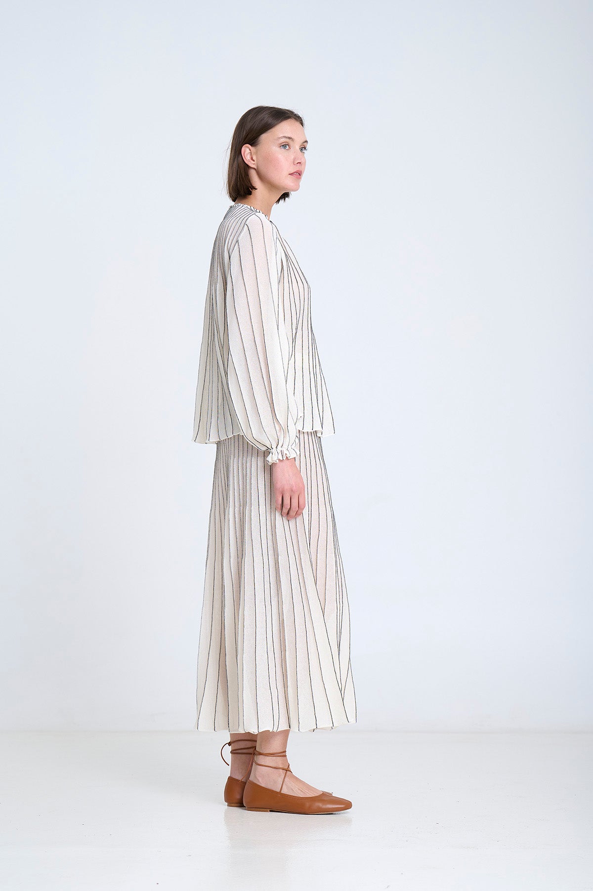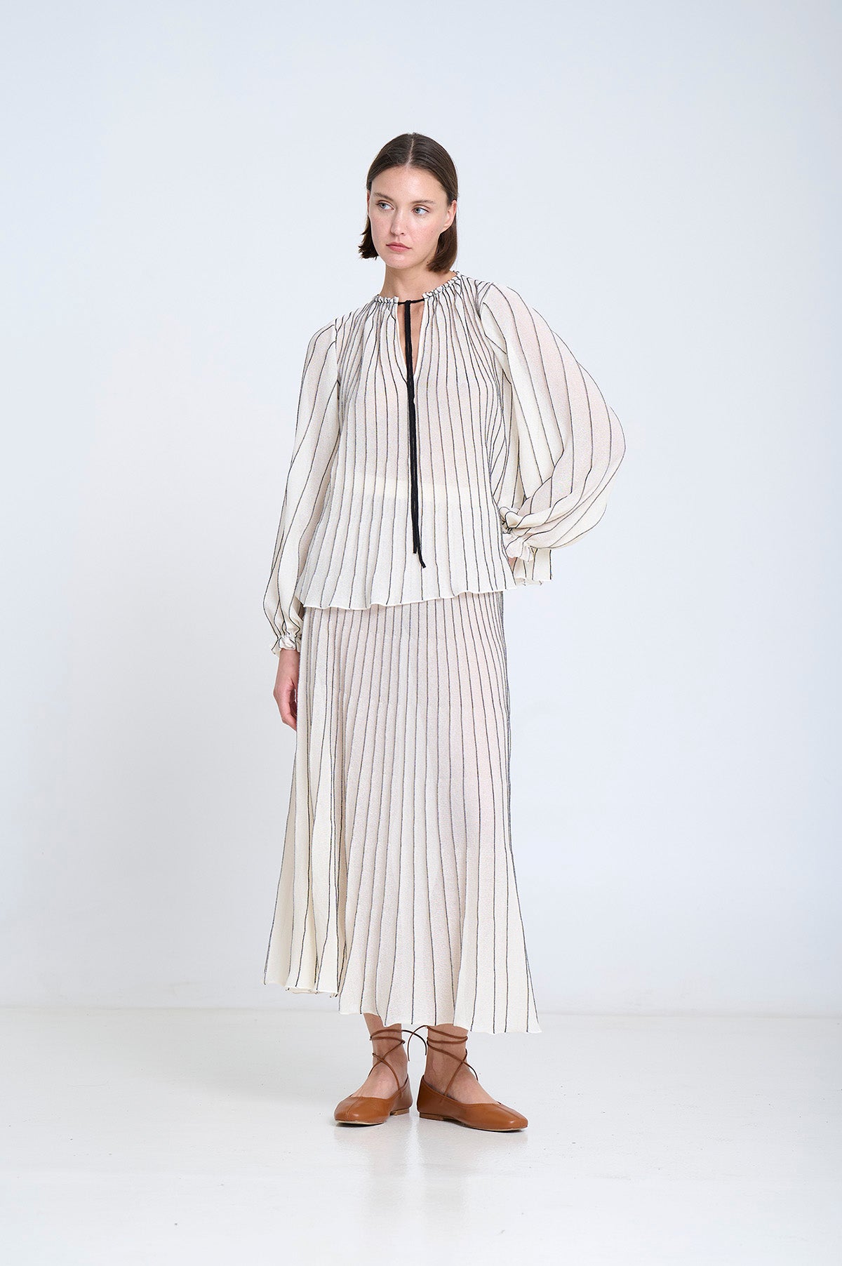 Stribet strikbluse, strikket med radialteknik. Pufærmer med elastiske manchetter. Fremstillet med FSC-certificeret italiensk garn.